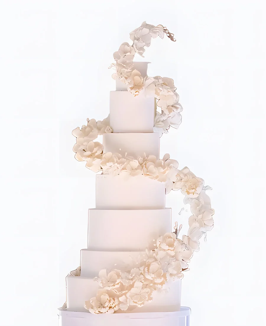 Трендовый торт на свадьбу с необычной композицией из цветов