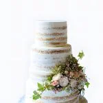 Трендовый торт на свадьбу с открытыми коржами и букетом цветов