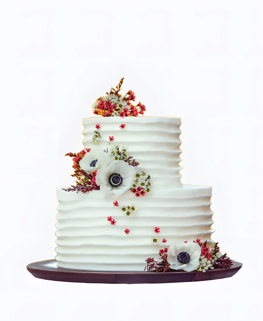 Трендовый торт с изящными цветами на свадьбу