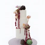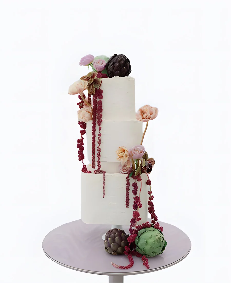 Трендовый торт с шишками и цветами на свадьбу