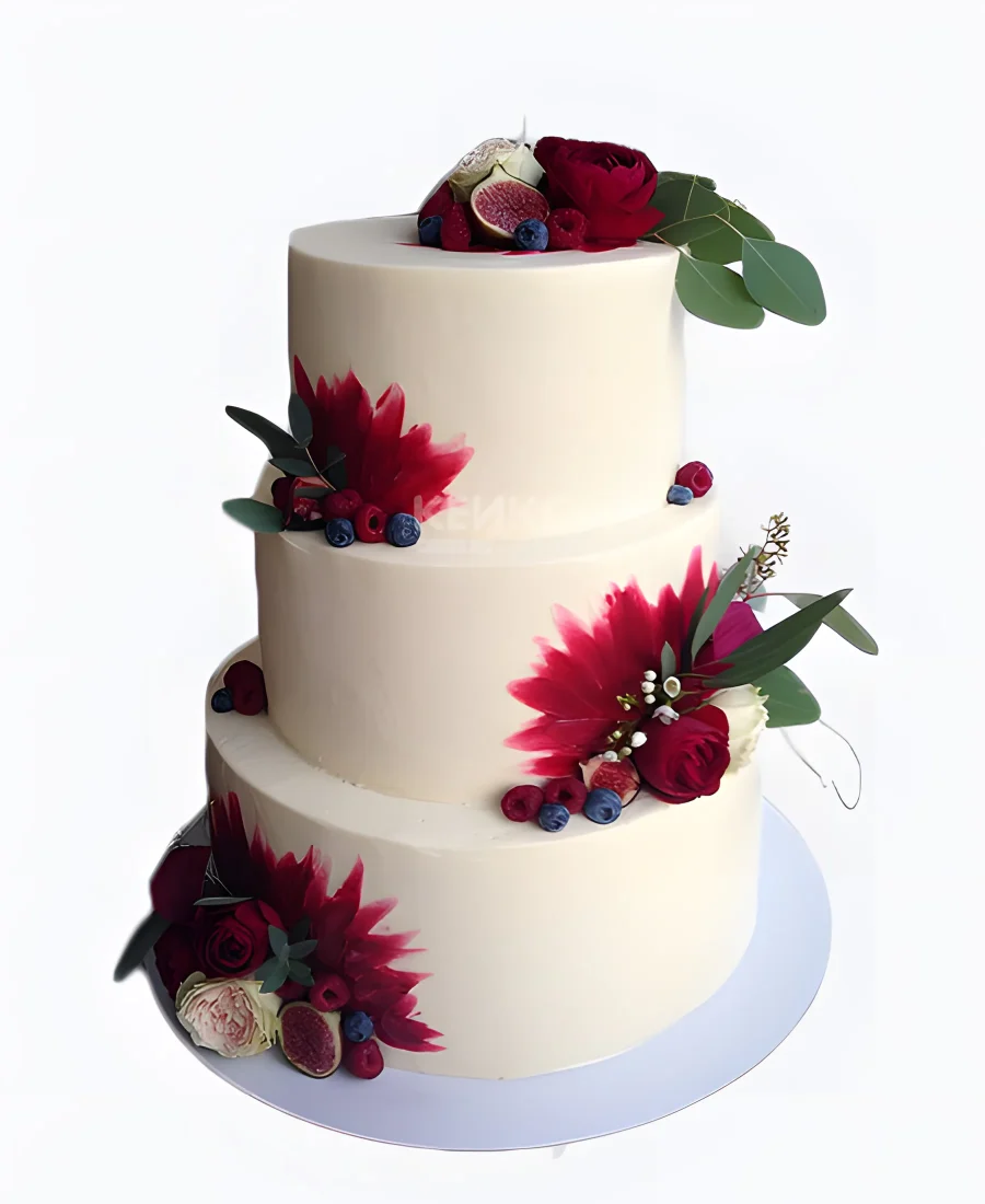 Трехъярусный свадебный торт без мастики с ягодами