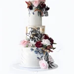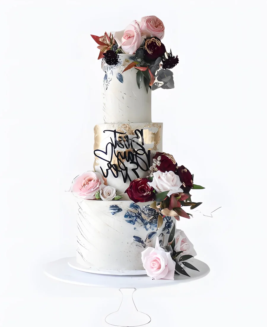 Живописный трехъярусный свадебный торт без мастики с цветами