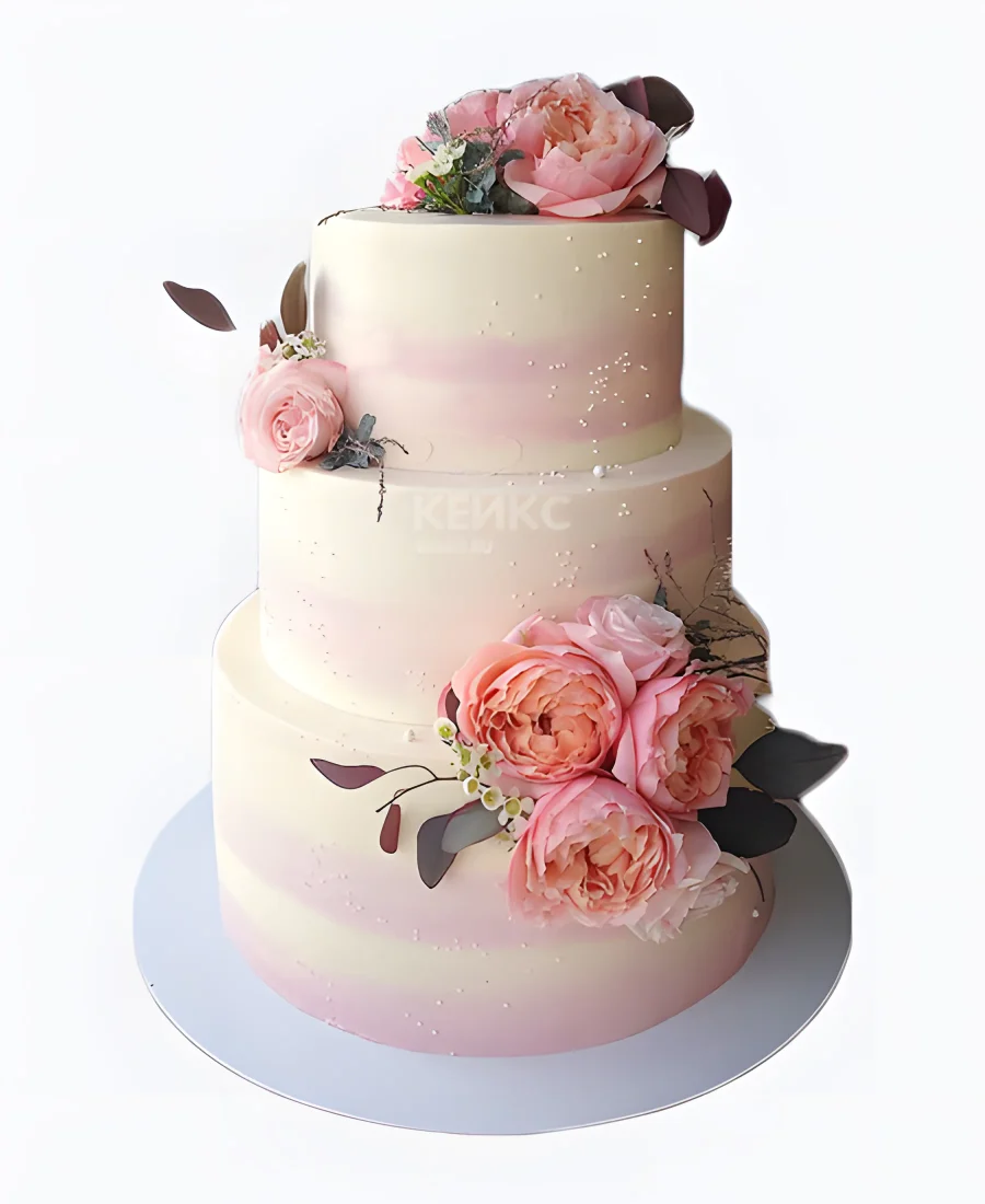 Свадебный трёхъярусный торт с пионами