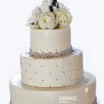 Трехъярусный торт на льняную свадьбу с розами и фигурками