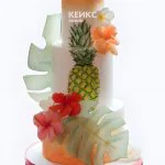 Трехъярусный торт с фотопечатью листьев и ананаса