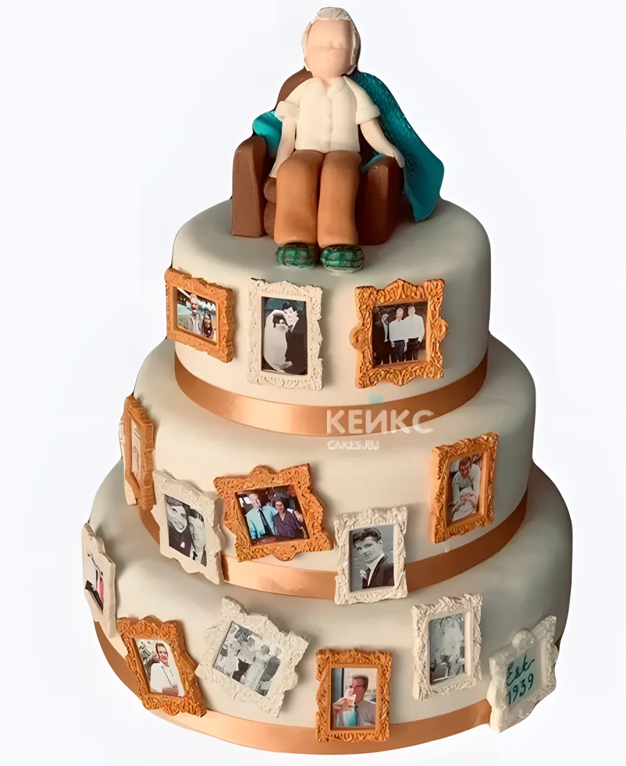 Трёхъярусный торт с фоторамками на юбилей дедушки