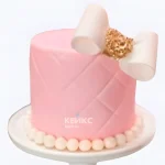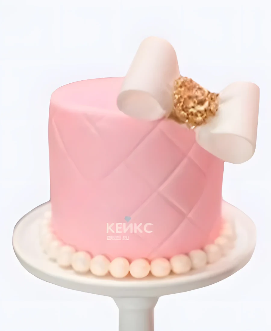 Величественный розовый торт с бусинами и белым бантом для девочки