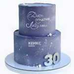 Элегантный двухъярусный торт в нежных персиковых и золотых тонах создает праздничное настроение. Искусно выполненные цветы и изящные узоры придают композиции особую торжественность. Золотистые акценты и цифра «30» в центре подчеркивают юбилейную тематику, делая торт настоящим центром внимания на празднике.