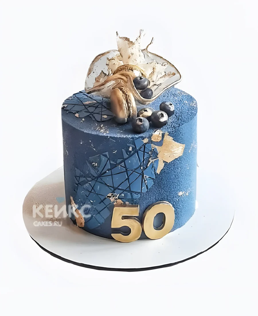 Велюровый торт женщине на 50 лет с голубикой и золотом