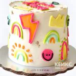 Яркий и жизнерадостный тортик в стиле бенто сразу привлекает внимание! Круглая форма с нежным кремовым покрытием украшена забавными аппликациями. Веселые персонажи и сочные цвета создают атмосферу детского праздника — такой торт станет центром внимания на любом мероприятии. Простые, но выразительные элементы декора вызывают улыбку и дарят ощущение радости.