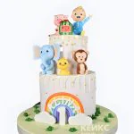 Этот яркий двухъярусный торт создан для праздника в честь первого дня рождения!