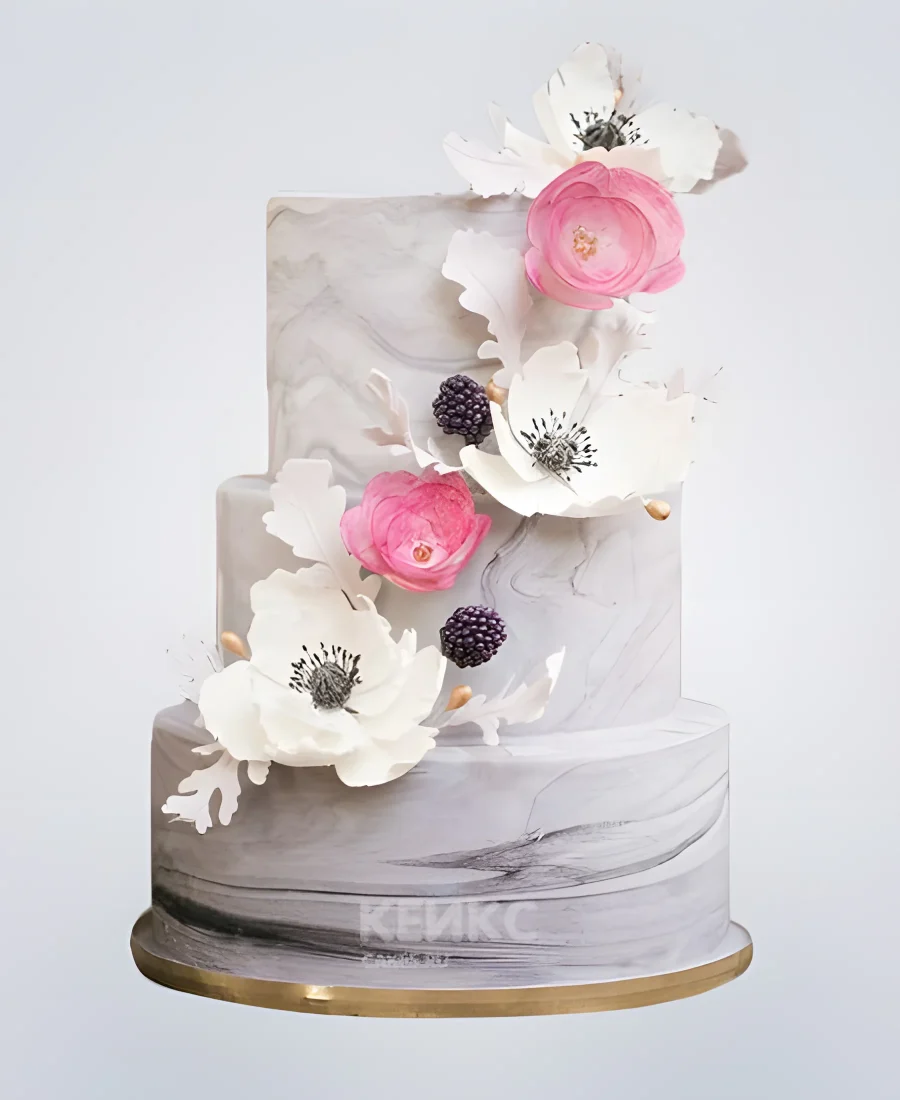 Пастельный весенний свадебный торт с цветами