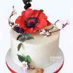 Весенний торт с маками и веточками