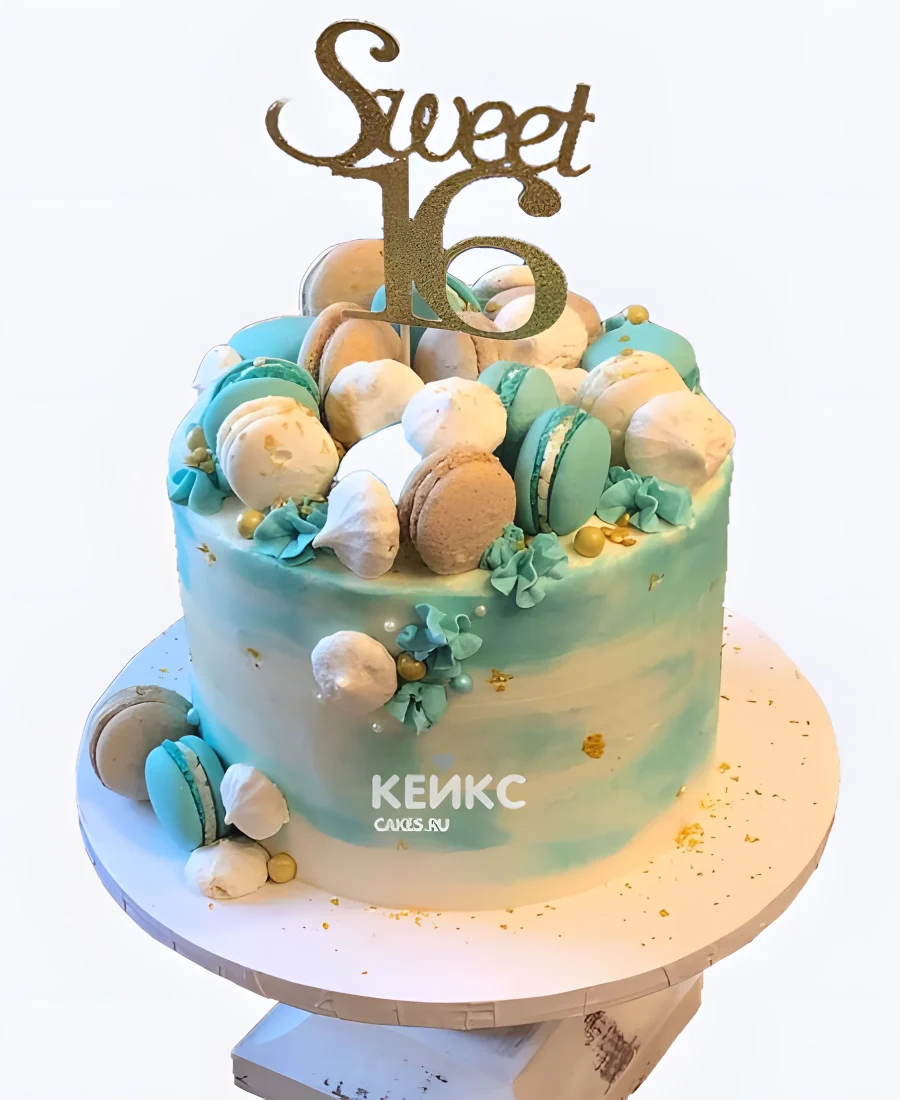 Вкусный торт на 16 лет девушке с макарунс