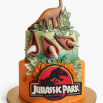 Восхитительный объёмный торт в стиле Юрского периода с динозаврами