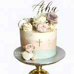 Восхитительный торт девочке на крестины с живыми цветами и макарунсами