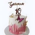 Воздушный торт девочке на 10 лет с цифрой и бабочками