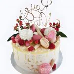 Воздушный торт девочке на 11 лет с живыми цветами и малиной