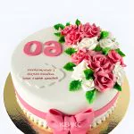 Воздушный торт женщине на 65 лет с цветами и надписью