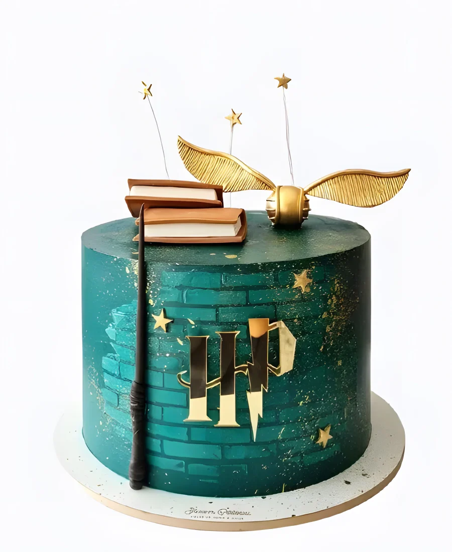 Тортик по Гарри Поттеру с книгами и волшебной палочкой