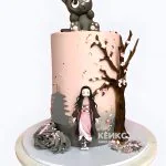 Нежно-розовый торт на день рождения в стиле Slayer Demon