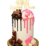 Высокий торт с акриловыми топперами и шоколадом