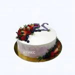 Этот торт в стиле рустик создает ощущение тепла и уюта. Нежный кремовый фон украшен сочными ягодами и полевыми цветами, будто собранными в летнем саду. Грубоватые мазки крема и натуральные элементы декора придают торту особый шарм. Сдержанная цветовая гамма с акцентами красного и зеленого выглядит очень гармонично. Такой торт словно переносит в деревенский дом, где пахнет свежей выпечкой и летним солнцем.