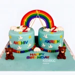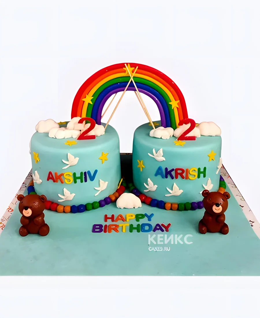 Яркие тортики с радугой и мишками на два года для мальчиков