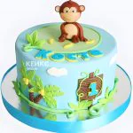 Яркий бирюзовый торт с обезьянкой