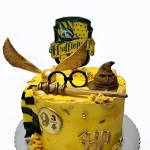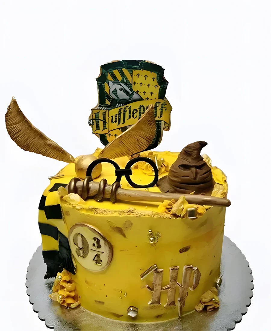 Яркий детский тортик по фильму Гарри Поттер с факультетом Пуффендуй