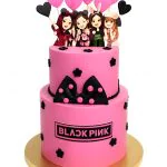 Яркий двухъярусный торт с фигурами группы Blackpink