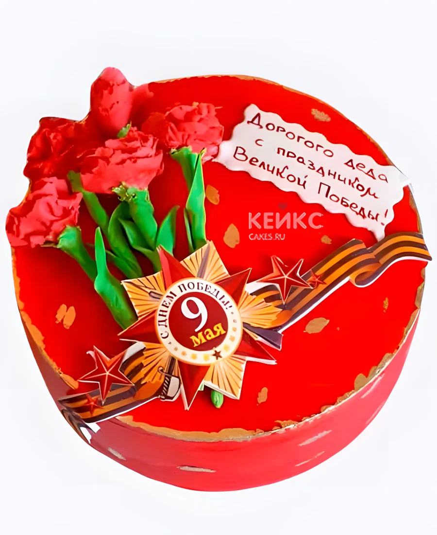 Яркий красный торт на День Победы