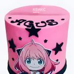 Яркий розовый торт на день рождения аниме Семейка шпионов