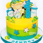 Яркий торт для мальчика без мастики с метрикой и фигурками
