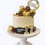 Яркий торт на 17 лет парню со звездами и золотыми шарами