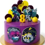 Яркий торт по сериалу Murder Drones на 8 лет
