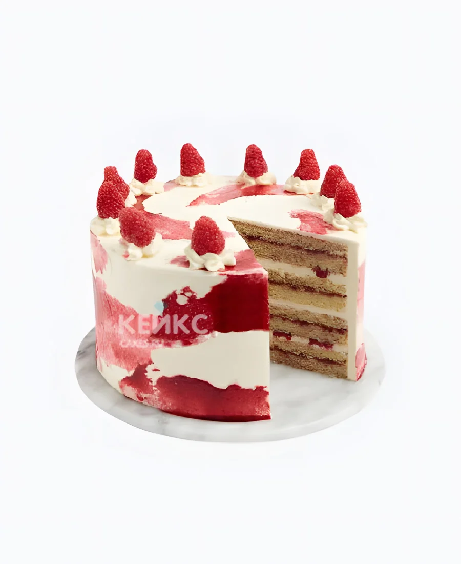 Яркий торт с малиной