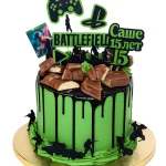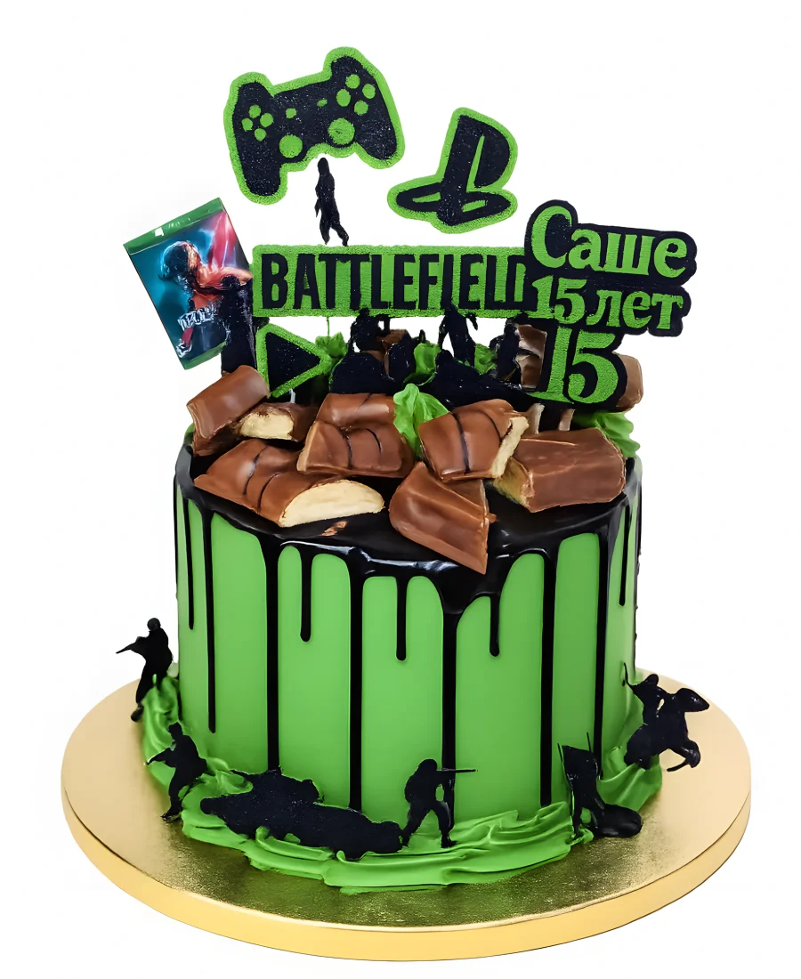 Яркий торт с мастичными топперами в стиле игры Battlefield