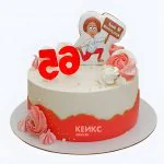 Этот праздничный торт — настоящий взрыв красок! Ослепительно белая мастика служит фоном для ярких цветочных композиций в розовых, оранжевых и фиолетовых тонах. Центральным элементом становится крупная цифра «65», выполненная из воздушного безе. Легкие завитки и нежные лепестки создают ощущение движения и радости. Торт выглядит одновременно элегантно и жизнерадостно — как сама юбилейная атмосфера.