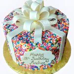 Яркий тортик с бантиком и красивой надписью на 18 лет