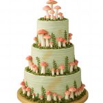 Яркий трехъярусный торт с мухоморами для грибника