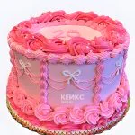 Ярко-розовый тортик с миниатюрными бантиками на день рождения девочки