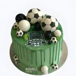 Ярко зеленый торт мальчику на 11 лет с футболом и цифрой
