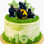 Ярко зеленый торт с кустами и персонажами игры CS GO