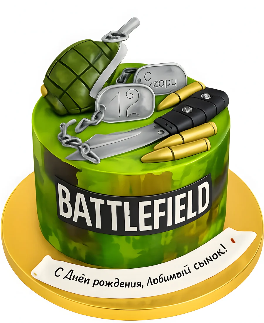 Зеленый торт с гранатой и пулями