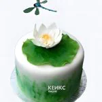Элегантный двухъярусный торт в нежных зеленых тонах создает ощущение свежести и гармонии. Белоснежные лилии из мастики, искусно расположенные по всему торту, придают композиции изысканность и легкость. Плавные переходы оттенков зеленого напоминают весеннюю листву, а цветочный декор создает романтичное настроение. Торт выглядит как настоящее произведение искусства, вызывая восхищение тонкой работой кондитера.