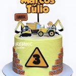 Желтый бенто торт мальчику на 3 года с самосвалом и трактором