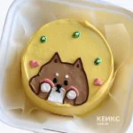 Желтый бенто-торт на рождение с милым песиком