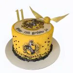 Желтый детский тортик на 11 лет по Гарри Поттеру Пуффендуй