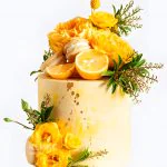 Солнечный свадебный торт в нежных желтых тонах создает атмосферу тепла и радости. Нежные кремовые розы и дольки апельсина добавляют свежести и легкости. Изящные макаруны и ягодные акценты придают торту игривое настроение. Мягкие складки крема и деликатные цветочные композиции делают его по-настоящему романтичным. Этот торт словно окутан летним настроением и нежностью.